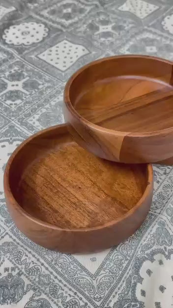Rustic Round Acacia Wooden Serving Bowls – Set of 3